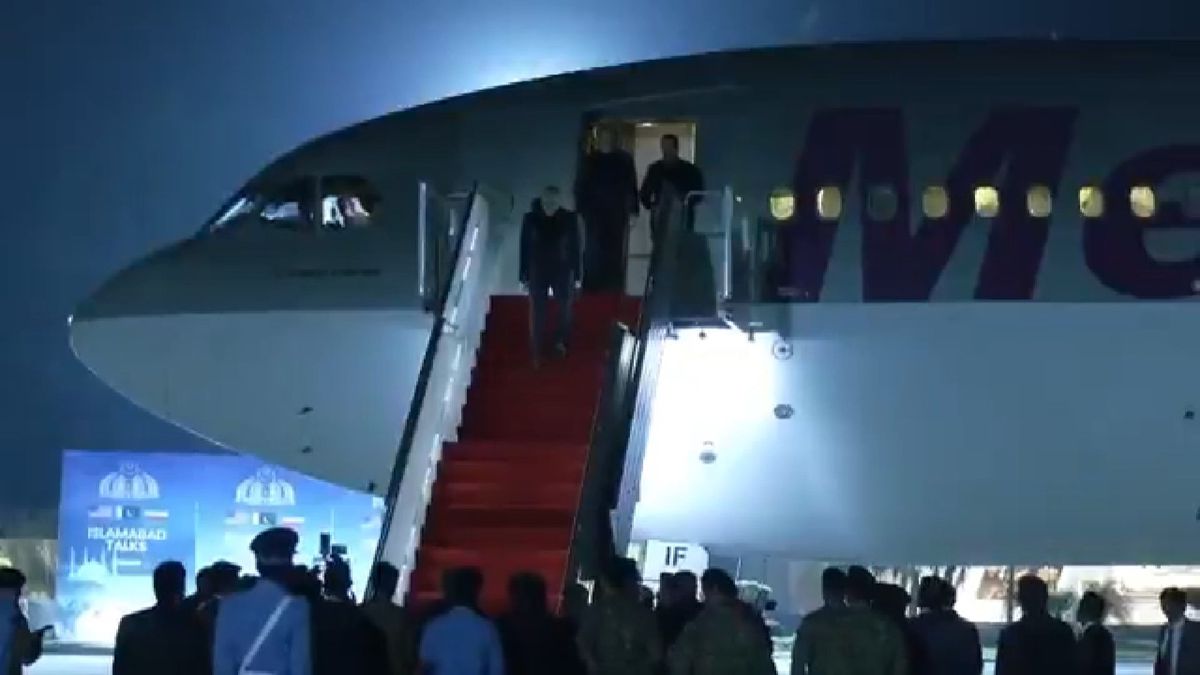 İran müzakere heyetinin lideri olarak Pakistan’ın İslamabad şehrine giden Meclis Başkanı Muhammed Bakır Kalibaf, havalimanında basın mensuplarının...
