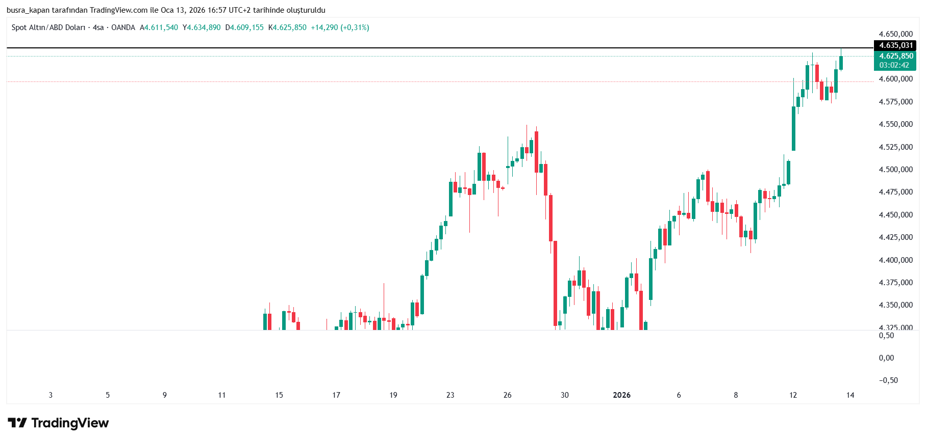 Önceden ons altın 4.601 dolar seviyesindeydi, ancak veri açıklandıktan sonra 4.635 dolara yükseldi.