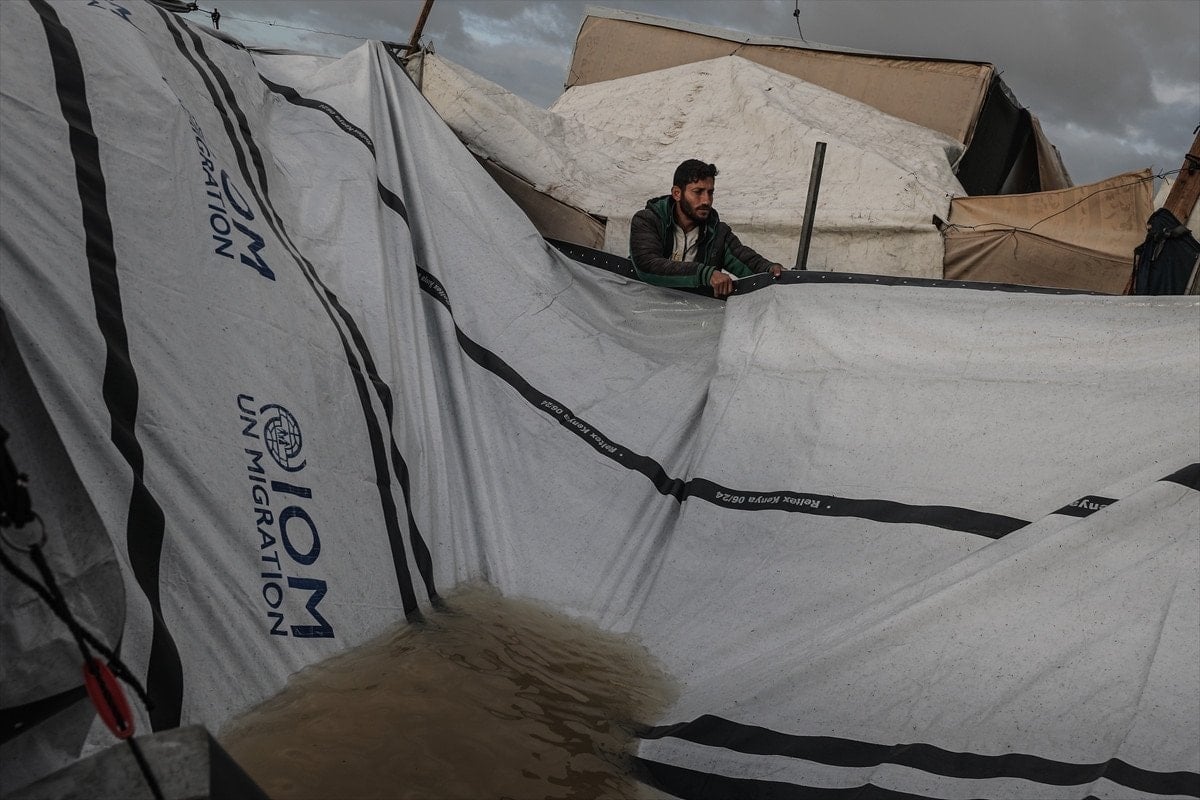Gazze’de, ateşkese rağmen olumsuz hava koşulları nedeniyle çadırlarda yaşayan halk, hayatta kalmak için mücadele ediyor.